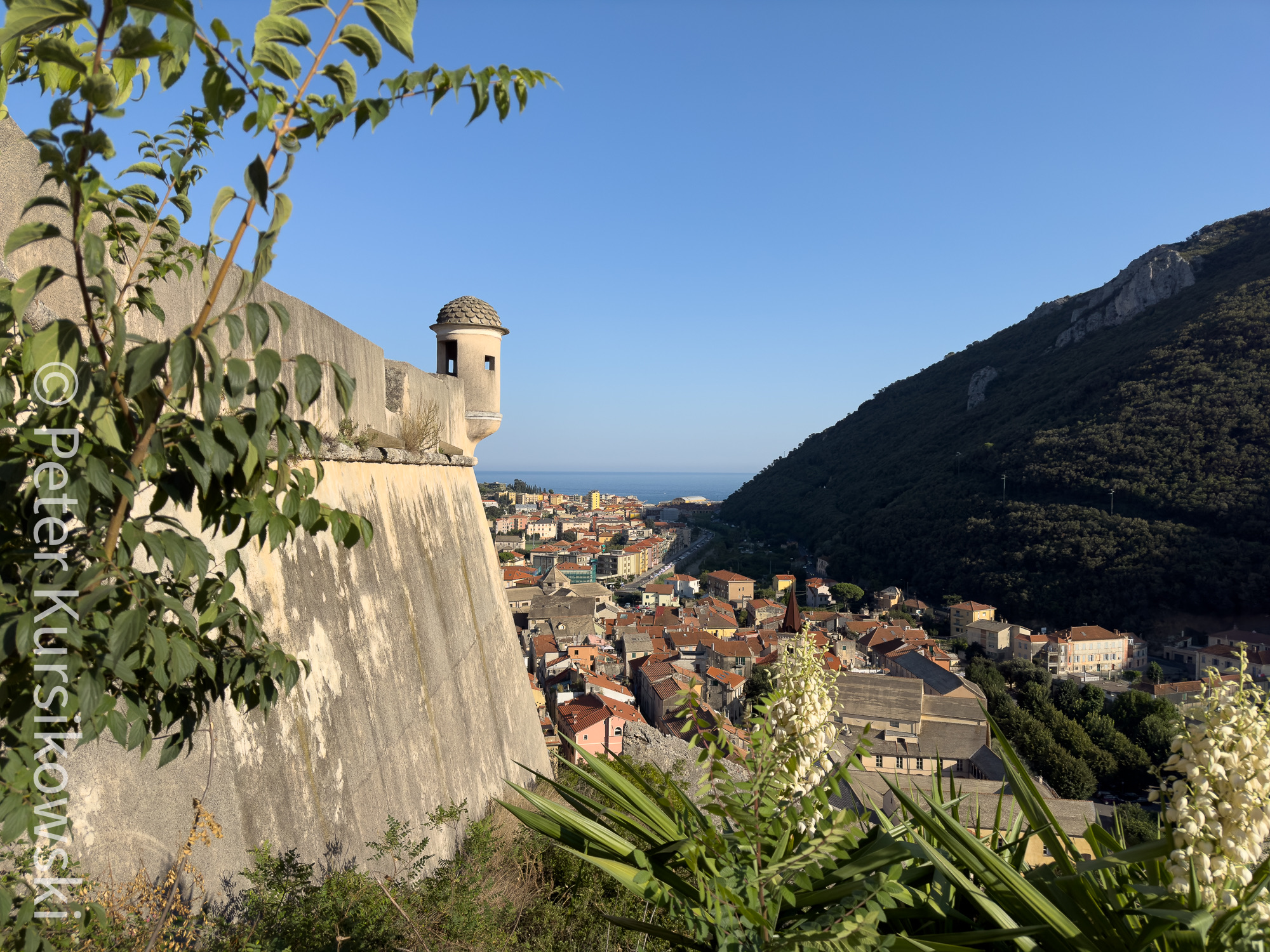 Mit dem Arbeitgeber abgeklärt, der hatte kein Problem damit und als wir hier im Mai und Juni in Urlaub waren, haben wir mit unserer Vermieterin gesprochen, ob sie nicht jemand kennt, der vielleicht auch für Langzeitvermietung mal eine Wohnung zur Verfügung stellt und wir haben tatsächlich jemanden gefunden, der für einen einigermaßen Preis den ganzen Monat seine Airbnb Wohnung vermietet. Die erste Wohnung, die wir uns ausgesucht hatten, lag auf dem Berg und hatte einen wunderschönen Blick über die Bucht von Finale Ligure. Aber das haben wir uns im Mai dann mal einmal näher angeschaut. Und um einkaufen zu gehen, jedes Mal immer 10 km eine Richtung mit dem Auto fahren zu müssen, das war dann doch irgendwie nicht machbar. Schöne Aussicht, ruhige Lage, aber wir haben uns dann doch für eine andere Wohnung entschieden, 1 Minute Fußweg zum Strand war ein absolutes Totschlagargument.