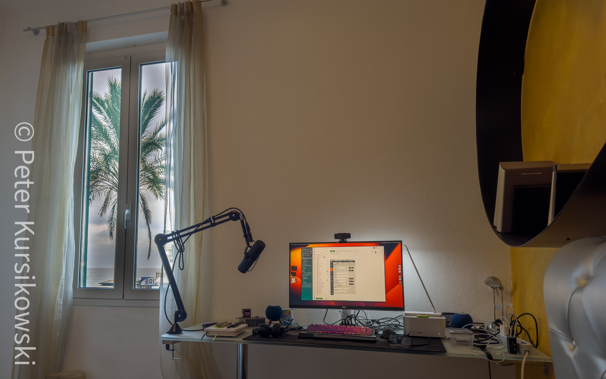 Das mit dem Arbeiten aus dem Home-Office hat auch gut funktioniert. Zum Glück gab’s in der Wohnung und der Klimaanlage, die man einschalten konnte. Die musste ich relativ oft auf niedrigster Stufe laufen lassen. Ansonsten hätte ich schnell 27 °C in der Wohnung gehabt, das war mir zum Arbeiten dann einfach zu warm. Internet ist schnell 90-tausender Leitung. Das reicht vollkommen aus, um Videokonferenz abzuhalten und das Equipment, was ich mitgenommen hab, hielt sich dann auch in Grenzen. Großer Monitor 27", Tastatur, Desktop Rechner, das ließ sich alles ganz gut mitnehmen.