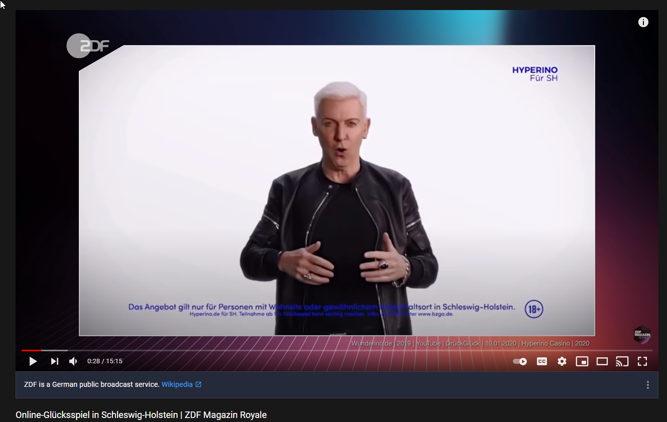 Da hätte mich die Sichtweise aus dem ZDF Magazin doch mal sehr dazu interessiert. Der eine setzt sich seit 10 Jahren für das Glücksspiel und dessen Reform ein und der andere macht gut bezahlte Werbung für Glücksspielunternehmungen.