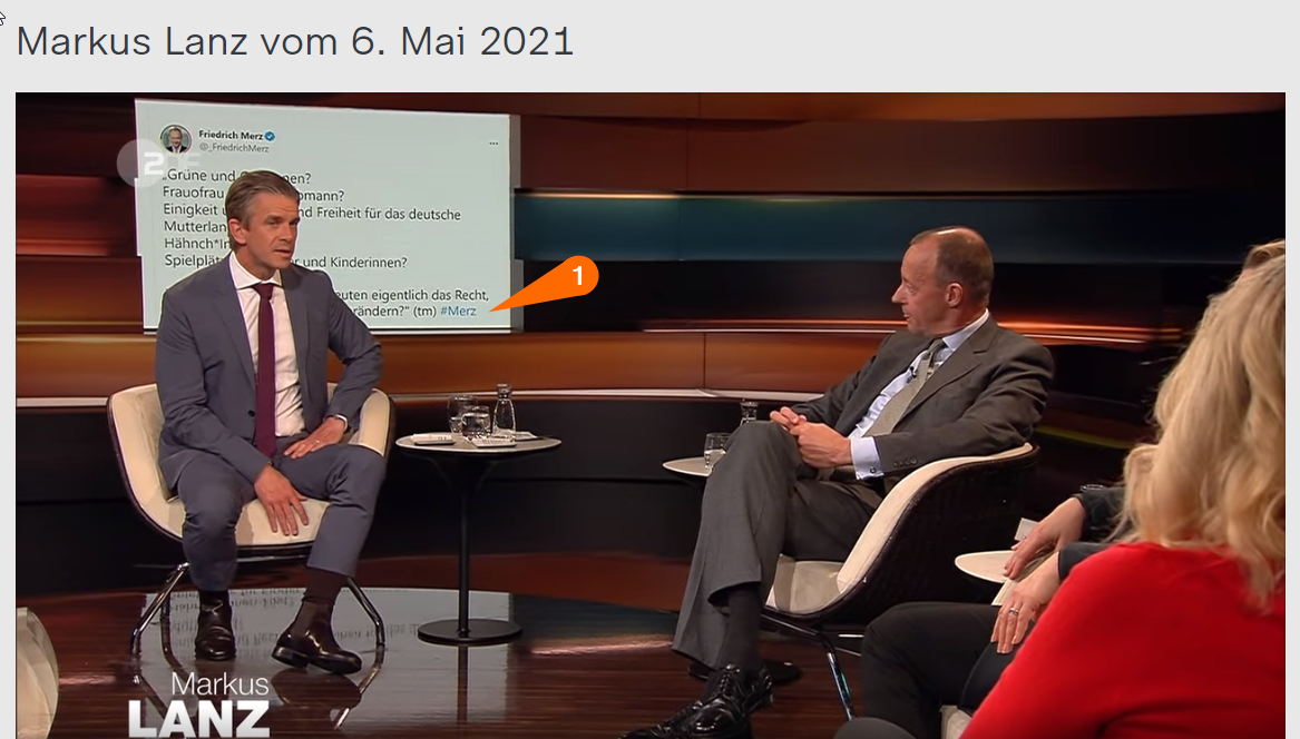 Apropos Lanz, ein paar Tage später in der Sendung Lanz vom 06.Mai.2021 wurde das dann ja erneut thematisiert und auch hier wieder kein Wort dazu, dass es sich hier um einen Tweet vom Team Merz handelt.